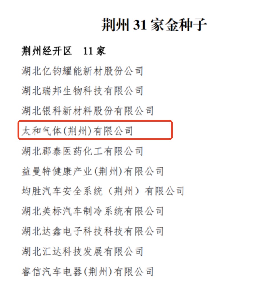 太和氣體(荊州)有限公司入選湖北省上市后備“金種子”企業(yè)名單